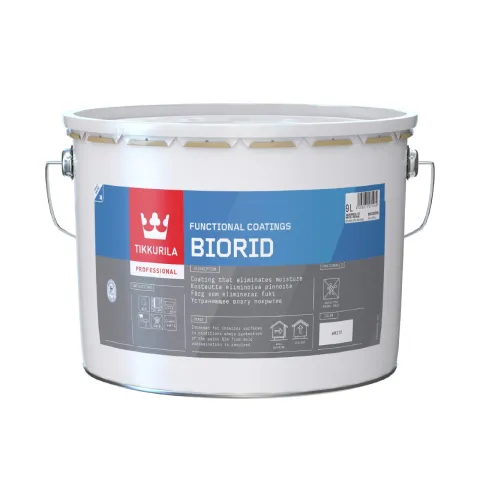 BioRid er en vanntynnet, funksjonell behandling for å eliminere fuktighet og holde overflaten tørr. Muggbeskyttelse oppstår i tillegg basert på de fysiske prosessene som forekommer i mikroporene.